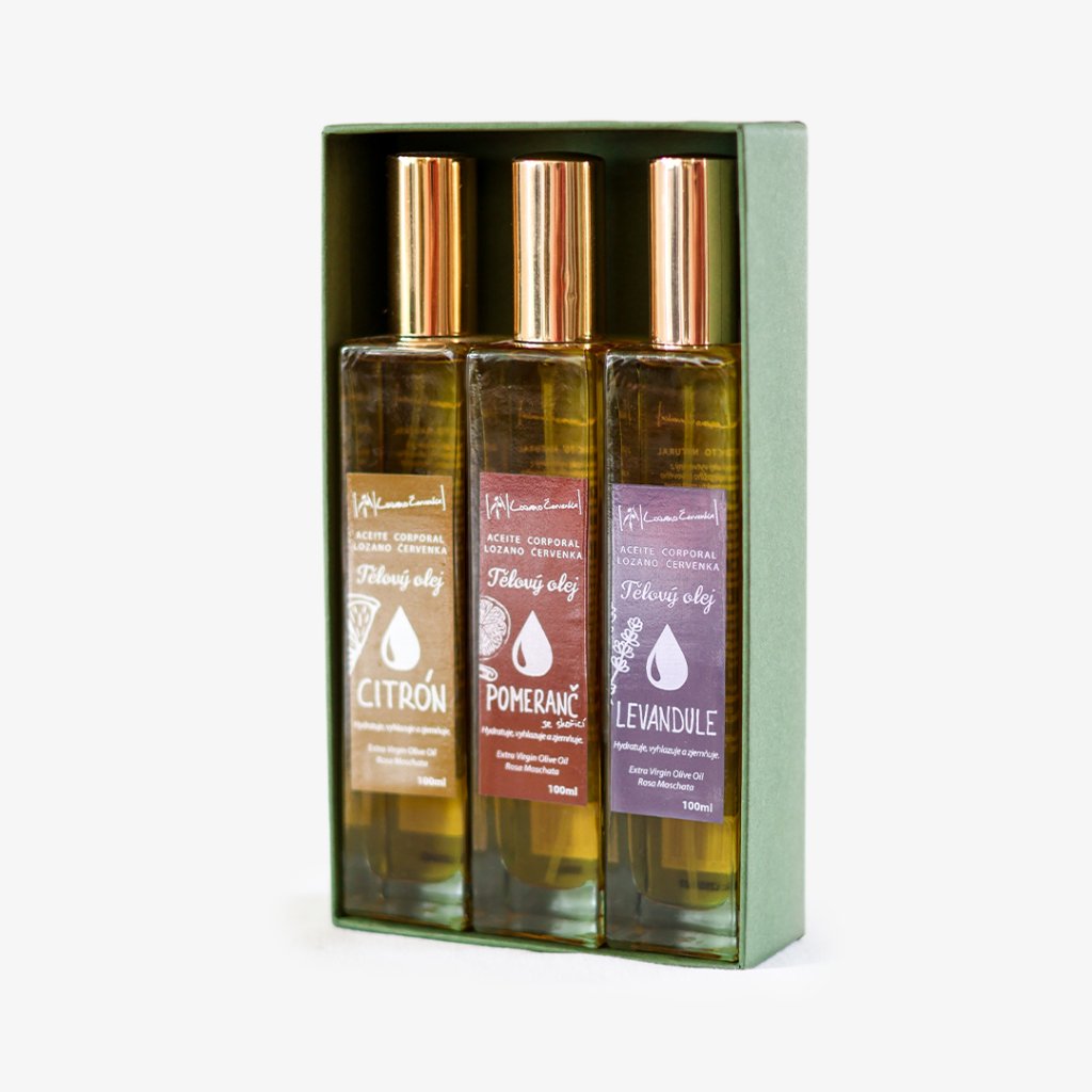 Nechte se okouzlit vůní pomeranče, příjemnou svěžestí citrónu a uklidňující levandulí. Olivové tělové oleje jsou přírodní a krásně pokožku hydratují. Vyrábí se z našeho jednodruhového extra panenského oleje Picual.