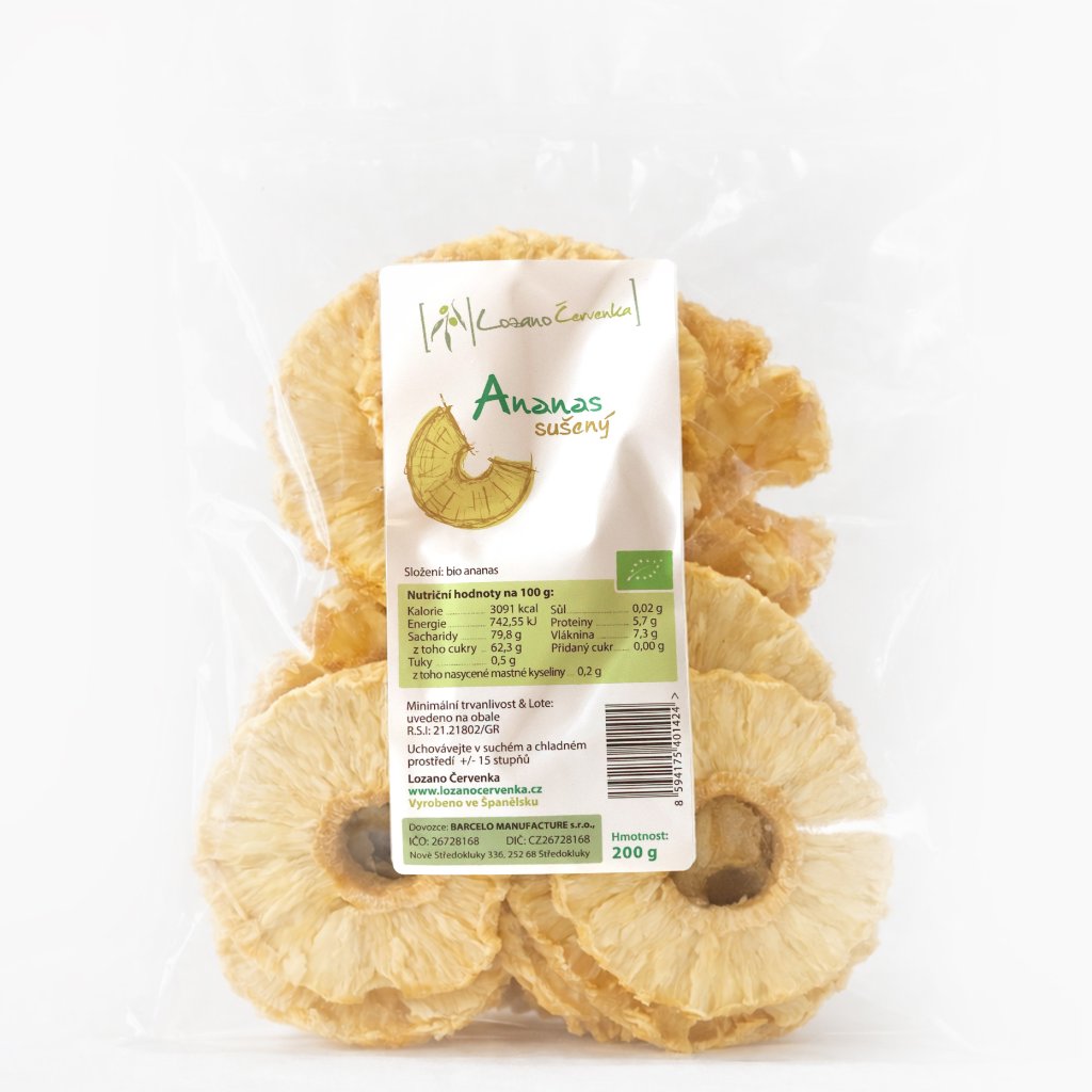 Sušený ananas poskytuje tělu mnoho vitamínů, minerálů, vlákninu a enzymy. Je skvělým zdrojem vitamínu C a draslíku. Pomáhá udržovat potřebné množství energie a je ideální jako zdravé občerstvení.