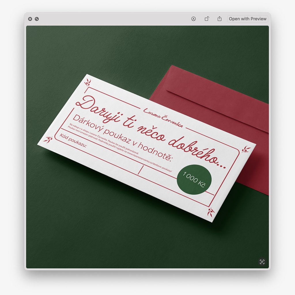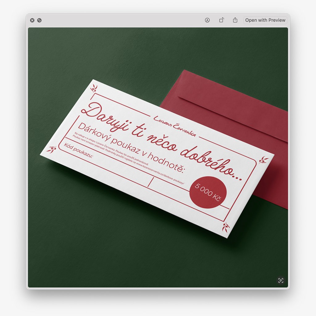 Pravidla použití dárkového poukazu najdete na: https://www.lozanocervenka.cz/darkove-poukazy/